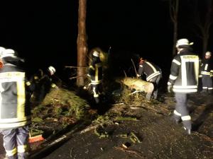Ein bei Sturm umgestürzter Baum blockierte die Landstraße zwischen Lauenberg und Fredelsloh.
