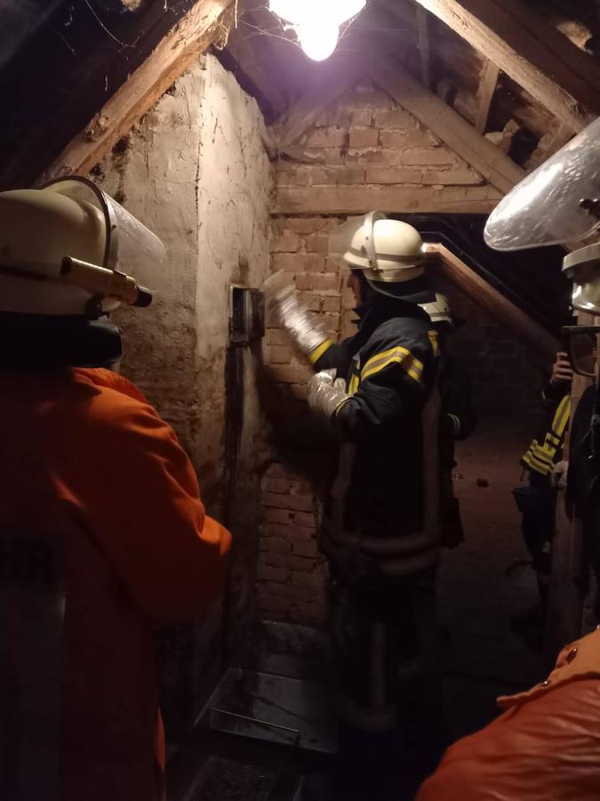 Schornsteinbrände dürfen nie direkt mit Wasser gelöscht werden, da dann die Gefahr besteht, dass der Schornstein platzt und sich das Feuer auf das Gebäude ausbreitet.