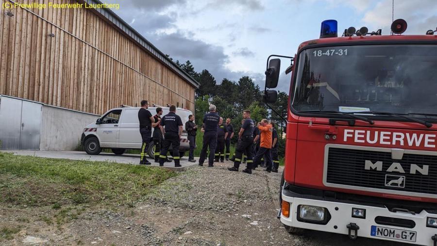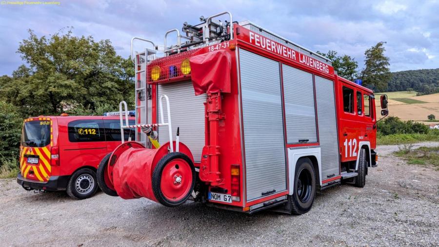 Bei der Gelegenheit konnten wir auch gleich mal die Anfahrt mit dem LF 16/12 zum Wasserhochbehälter testen. Trotz des vom Regen teils stark ausgespülten Weges hat unser Fahrzeug den Anstieg mit Leichtigkeit gemeistert.