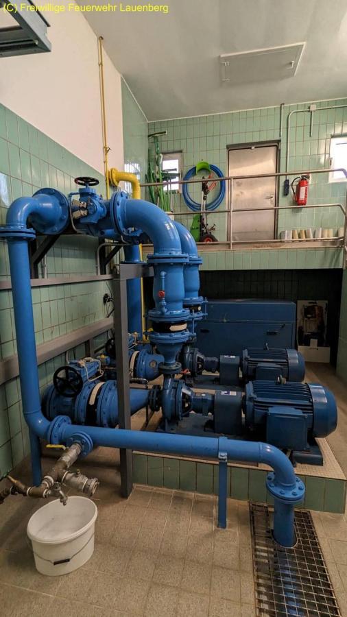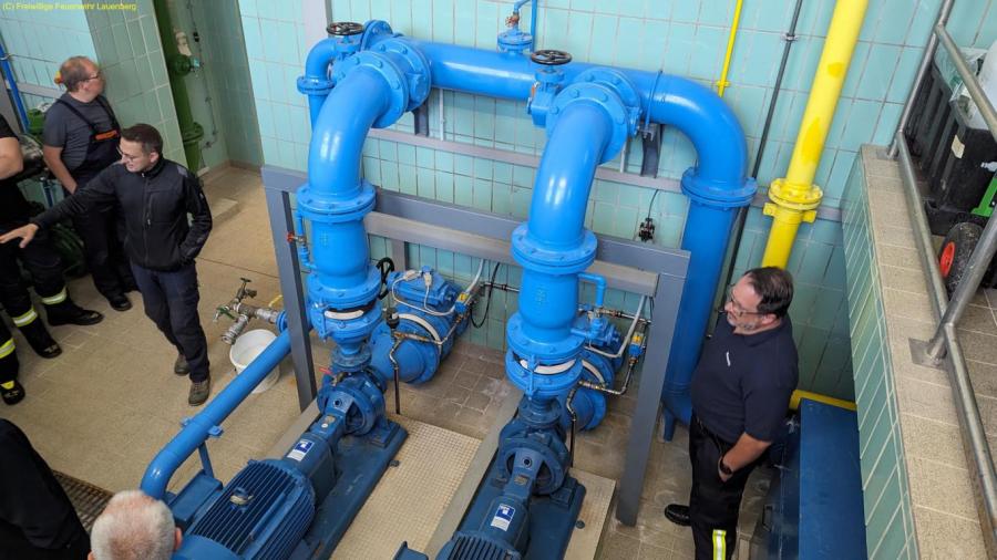 Bei den Pumpen wurde der ein oder andere Kamerad neidisch, denn die geförderten Mengen übersteigen die der Feuerwehrpumpen um ein Vielfaches. Besonders interessant war die Tatsache, dass täglich rund 1,2 Millionen Liter Trinkwasser durch die Rohre der Anlage gefördert werden.