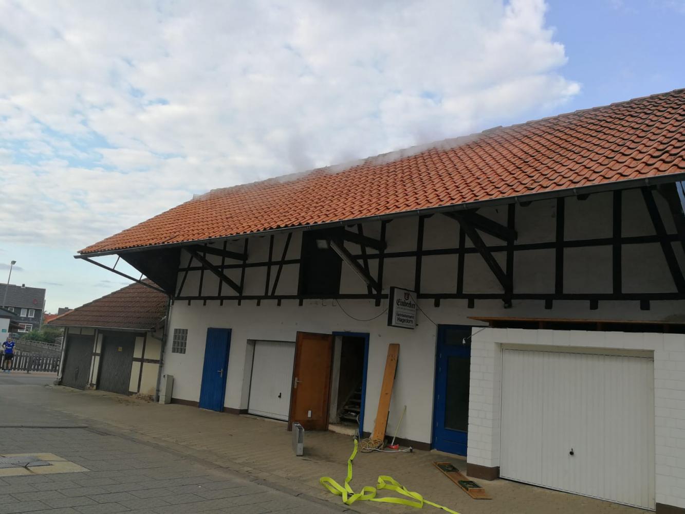 Angenommen wurde eine Verpuffung im Obergeschoss eines Garagenkomplexes in der Sollingstraße. Dabei wurden vier Personen verletzt, von denen drei zu retten waren.