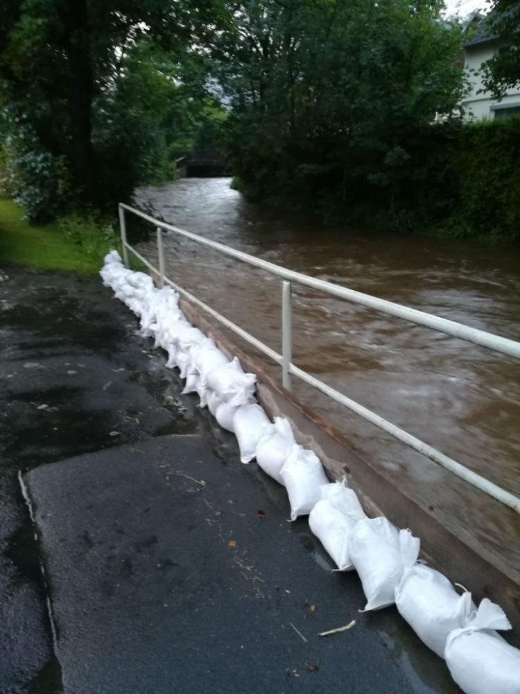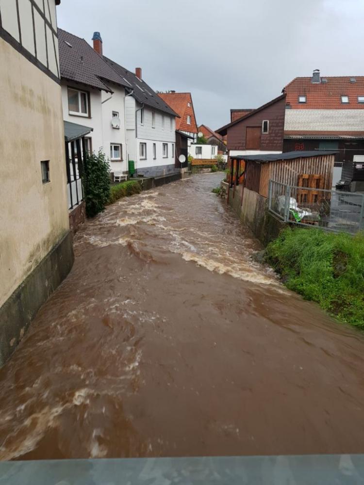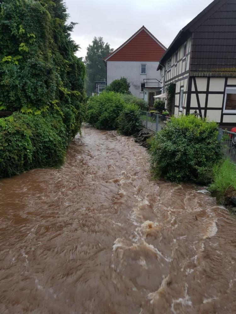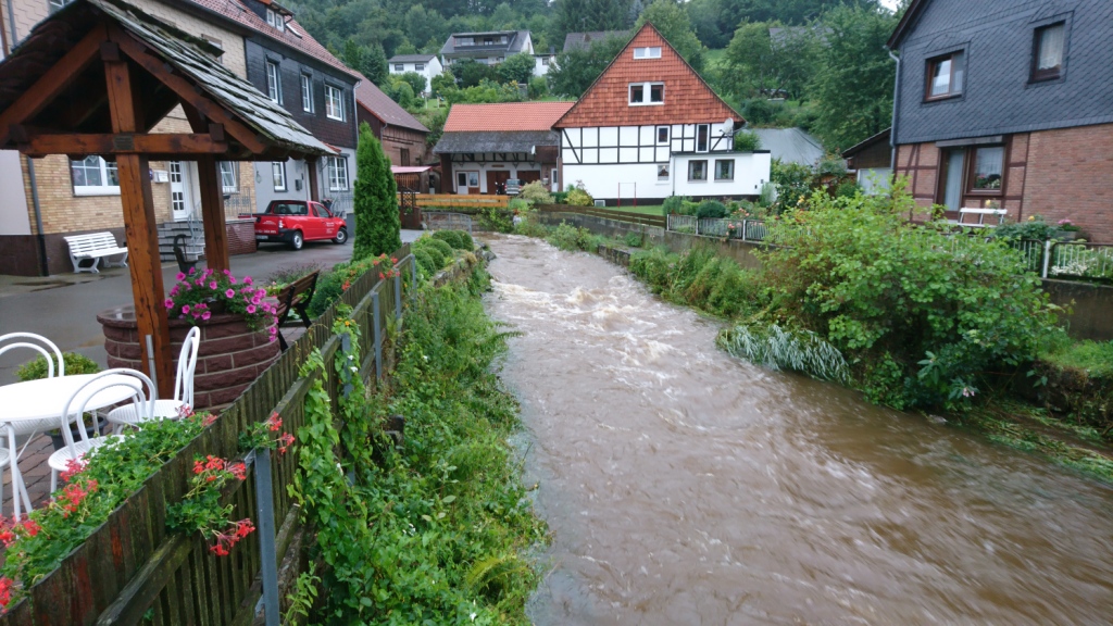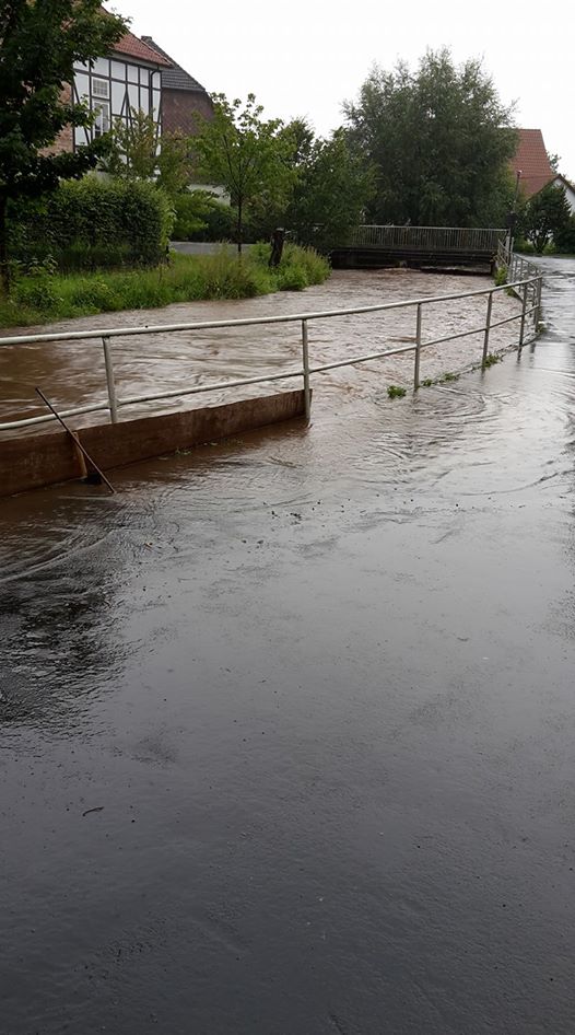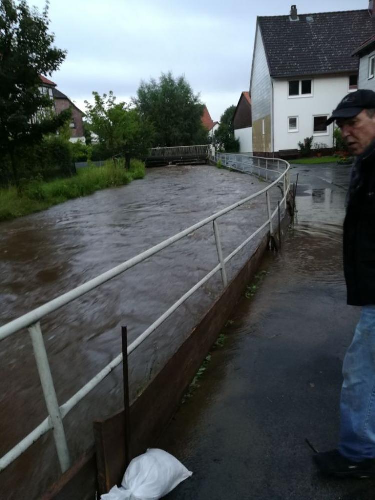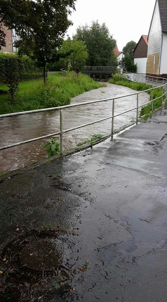 Andauernder Regen von Montag bis letztlich Mittwoch mit Mengen um 100 Liter pro Quadratmeter führte am Dienstagabend auch dazu, dass die Dieße im Bereich der Brinkstraße über das Ufer trat.