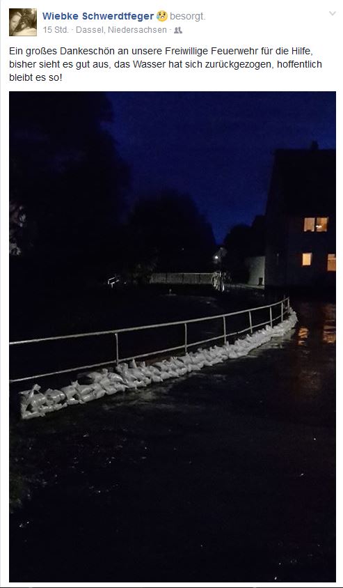 Gerade als die ersten Kameraden gegen 22:00 Uhr wieder nach Hause gehen wollten, wurden wir zur Unterstützung der Ortsfeuerwehr Markoldendorf alarmiert. Dort haben wir erneut Sandsäcke abgefüllt.