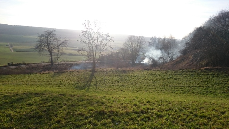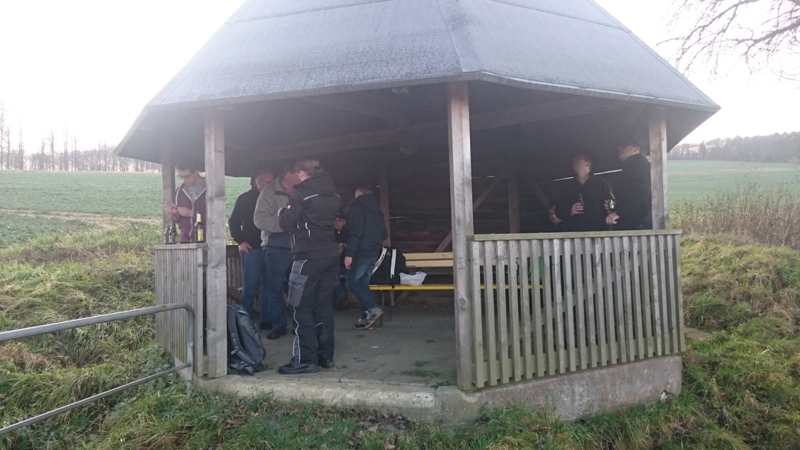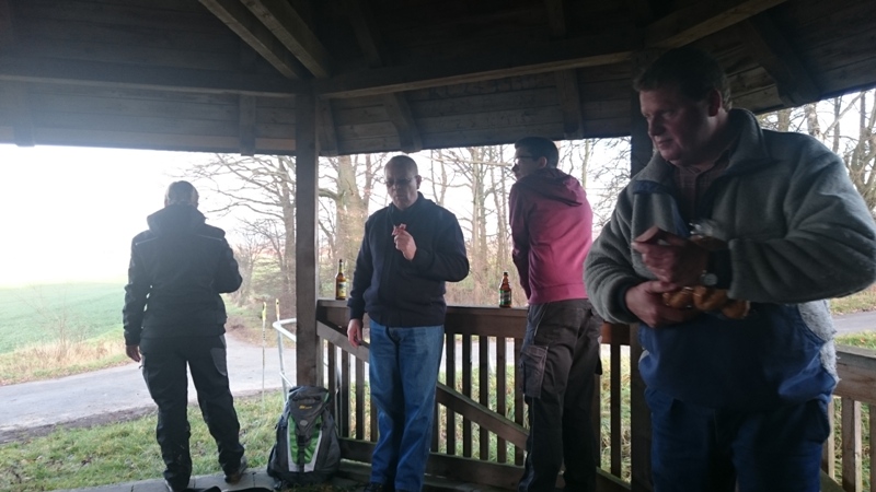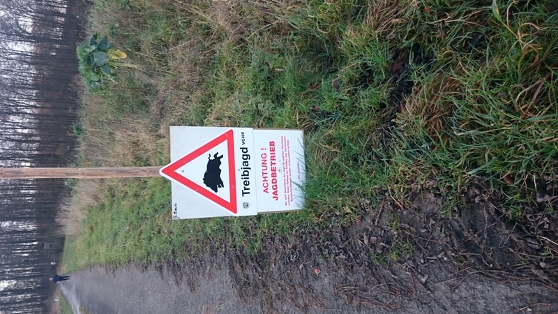 Der Weg führte uns tief in Hilwartshäuser Gefilde. Nachdem erste Schüsse zu hören waren, schwenkten wir ab in Richtung Ellensen und Hoppensen. Beim Verlassen des Waldes war dann auch der Grund für die Schüsse zu sehen: es war Treibjagd! Nur wo war das Schild auf unserer Seite???